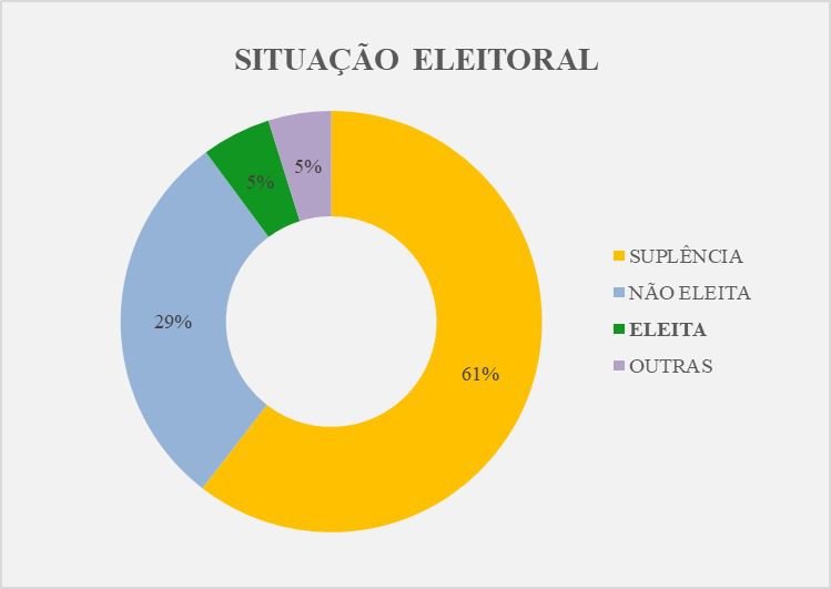 Além disso, 86,71% se declaram solteiras — índice que pode refletir tanto escolhas pessoais quanto problemas com o registro formal de uniões, ou até o não interesse na formação tradicional de família. Sobre reeleição, o achado é claro: predomina a suplência (60,47%) e poucos retornam ao pleito seguinte com estrutura competitiva. Apenas 5,31% conseguem se eleger efetivamente.