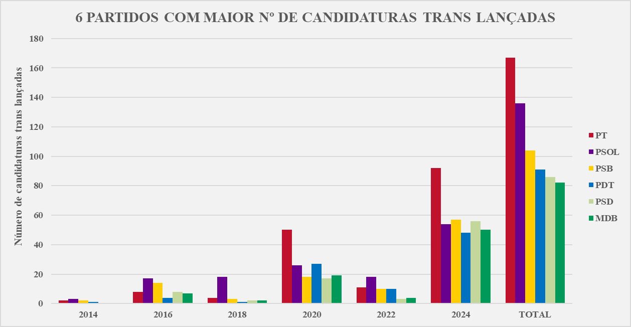 Gráfico 4: Top 6 partidos que mais lançam candidaturas trans