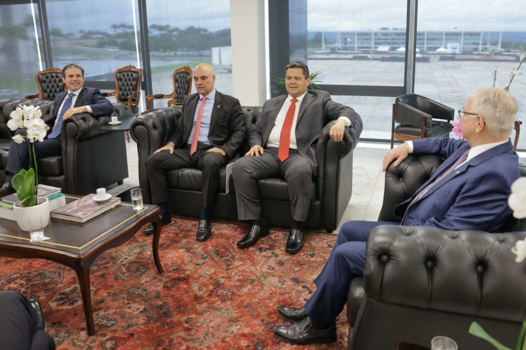 Hugo Motta, Alexandre de Moraes, Davi Alcolumbre e Edson Fachin em reunião no STF / Crédito: Rosinei Coutinho/STF