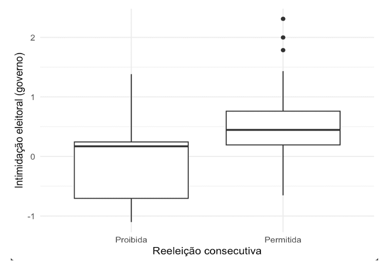 Embora esses testes estatísticos não permitam identificar uma relação de causalidade entre a permissão da reeleição consecutiva e maiores níveis de intimidação eleitoral por parte do governo, a análise identifica uma correlação entre as duas variáveis.