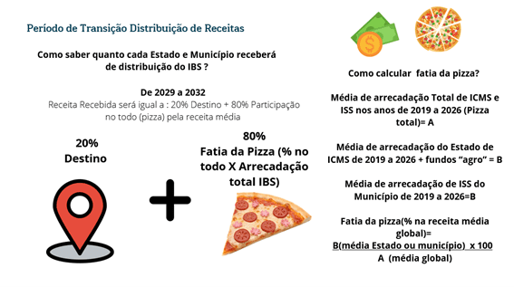 É essa transição longa da distribuição das receitas que tem sido pouquíssimo abordada. E o que prevê essa transição longa de distribuição de receitas? Para facilitar a compreensão colocarei duas figuras que ilustram como será calculada a receita do IBS que cada Estado e Município receberá a partir de 2029.